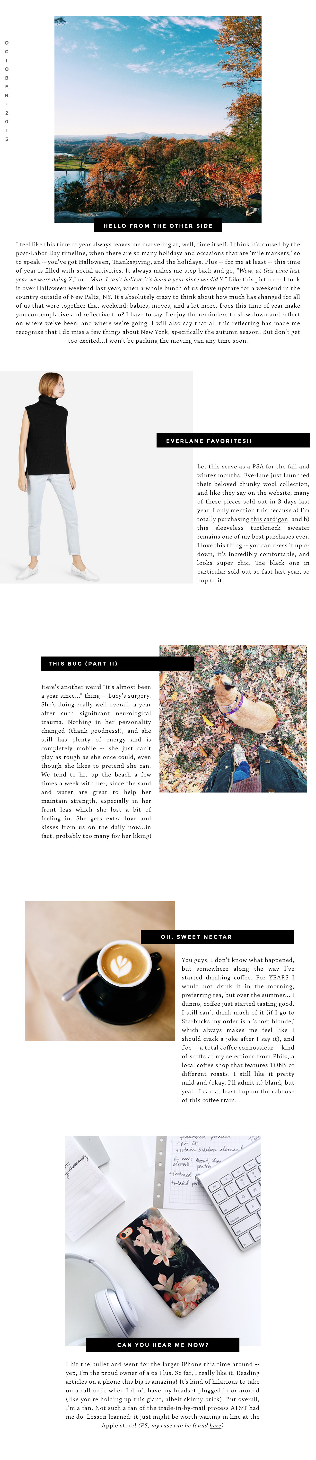 Well, look at that. I’m pretty proud that I managed to get a Life Lately update done just before the end of the month! It’s been more of the same around here, plus me wishing the weather in SF was a lot more autumnal (we’re getting there, slowly!). Cue discussion of HOW THE HECK is it Halloween this weekend, and November next week. Joe and I both hate dressing up in costumes (I know, what Halloween curmudgeons) so we will be spending Saturday at home, secretly sneaking candy we’ve left out for trick-or-treaters in our building. Lucy may have to get dressed up in her taco costume again, though.